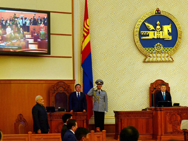 Prime Minster Narendra Modi at the Mongolian Parliament at Ulan Bator in Mongolia on Sunday. PTI[/caption] The Prime Minister, who flew in from Mongolia after his three-day visit to China, will hold talks on the entire gamut of bilateral, regional and global issues with President Park Geun-hye and explore ways to upgrade cooperation in diversified areas. He will have a hectic schedule that will start with a wreath-laying ceremony at the Seoul National Cemetery. Modi will address a community reception where about 1,500 members of the Indian community are expected to attend before getting into talks with the Korean President. Modi, who is keen to woo Korean investments in India, will address India-Republic of Korea CEOs Forum, which would also be attended by the Korean President. The Prime Minister will follow this up with meetings with some of the heads of Korean companies that are willing to invest in India or have already invested in India. He will also visit the Hyundai Heavy Industries shipyard in the backdrop of shipbuilding emerging as an important area of cooperation between the two countries. Considerable significance is being attached to this visit, the first state visit to be exchanged between India and South Korea since the change of government in India in May last year. Bilateral trade is about $16 billion and the two sides are keen to see that it goes up substantially. There are 300 Korean companies which have invested about $3 billion in India. They employ about 40,000 workers in India. India’s investment in South Korea is close to $ 2 billion. Indian companies are looking forward to greater access in Korea to pharmaceutical and IT products. PTI