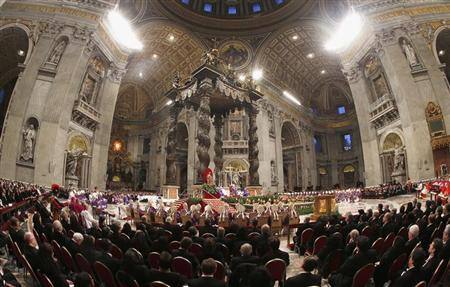 VATICAN CITY (Reuters) - A capacity crowd in St Peter’s Basilica gave Pope Benedict a thunderous standing ovation on Wednesday at an emotional last public Mass before he resigns at the end of the month.