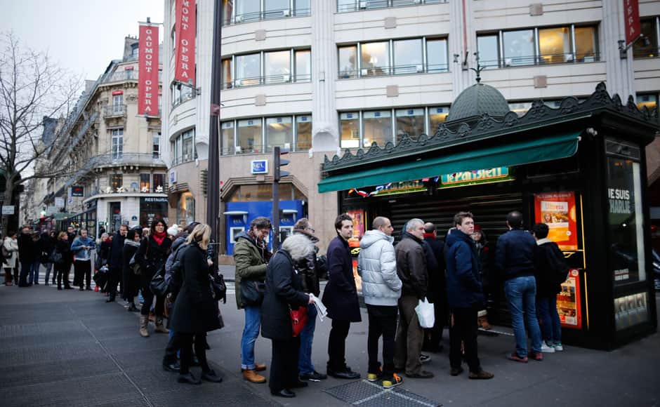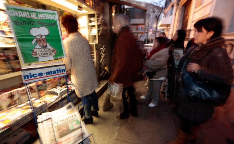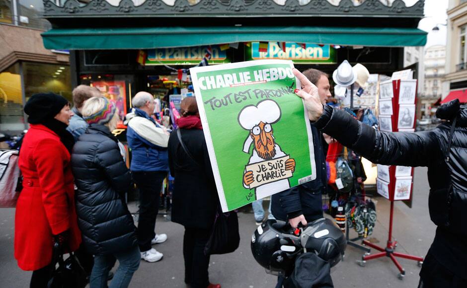 [caption id=“attachment_2047215” align=“alignleft” width=“940”]  The new issue of Charlie Hebdo, the French satirical magazine that was attacked by gunmen in a Paris, was sold out within minutes. 12 of the magazine’s staff were killed in the attack. We take a look photos of people queuing up to buy Charlie Hebdo. Reuters[/caption] [caption id=“attachment_2047217” align=“alignleft” width=“940”]  People queue to get a copy of satirical French magazine Charlie Hebdo new issue titled “Tout est pardonne” (“All is forgiven”) showing a caricature of Prophet Mohammad in front of a kiosk in Paris. Charlie Hebdo published a front page showing a caricature of the Prophet Mohammad in its first edition since Islamist gunmen attacked the satirical newspaper. With demand surging for the edition on the news stands on Wednesday, the weekly planned to print up to 3 million copies and in sixteen languages, dwarfing its usual run of 60,000, after newsagents reported that large numbers of customers around the country were placing orders. Reuters[/caption] [caption id=“attachment_2047219” align=“alignleft” width=“940”]  French Prime Minister Manuel Valls holds a copy of Charlie Hebdo with the title “Tout est pardonne” (“All is forgiven”) as he leaves the weekly cabinet meeting at the Elysee Palace in Paris. [/caption] [caption id=“attachment_2047221” align=“alignleft” width=“940”]  People queue for the new issue of satirical French weekly Charlie Hebdo entitled “Tout est pardonne” (“All is forgiven”), which shows a caricature of Prophet Mohammad, at a kiosk in Nice. Reuters[/caption] [caption id=“attachment_2047223” align=“alignleft” width=“940”]  A woman shows a copy of the new issue of satirical French weekly Charlie Hebdo entitled “Tout est pardonne” (“All is forgiven”), which shows a caricature of Prophet Mohammad, in front of a kiosk in Paris. Reuters[/caption] [caption id=“attachment_2047225” align=“alignleft” width=“940”]  A man poses with the new issue of French satirical weekly Charlie Hebdo entitled “Tout est pardonne” (“All is forgiven”), which shows a caricature of Prophet Mohammad, at a cafe in Nice, southern France. Reuters[/caption]