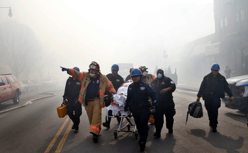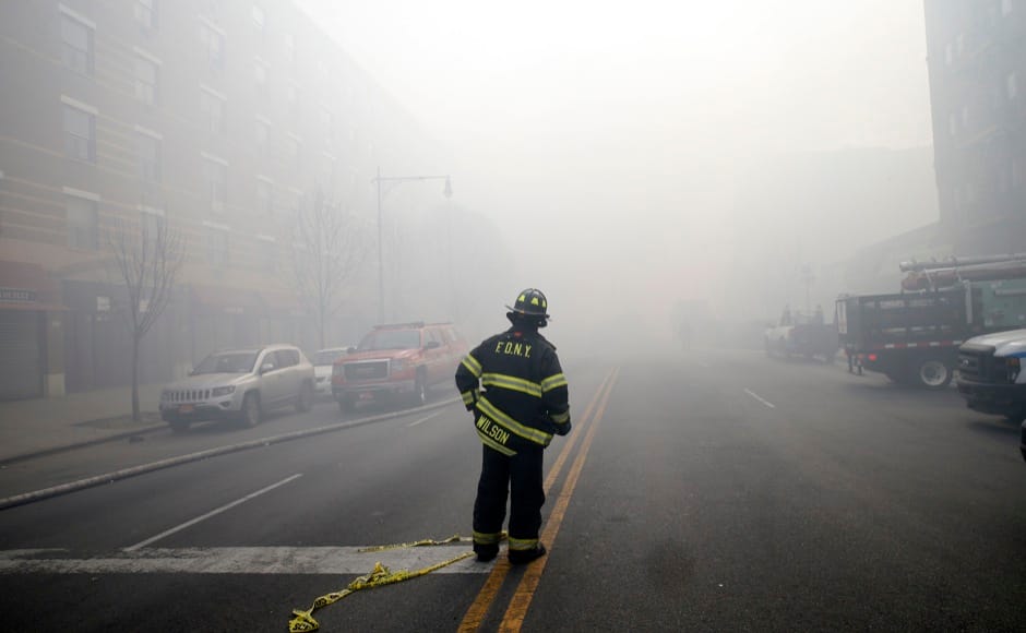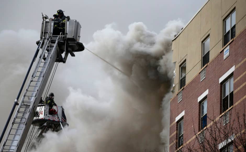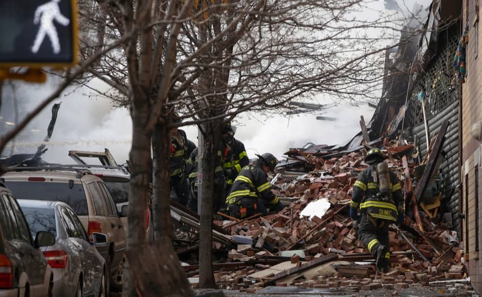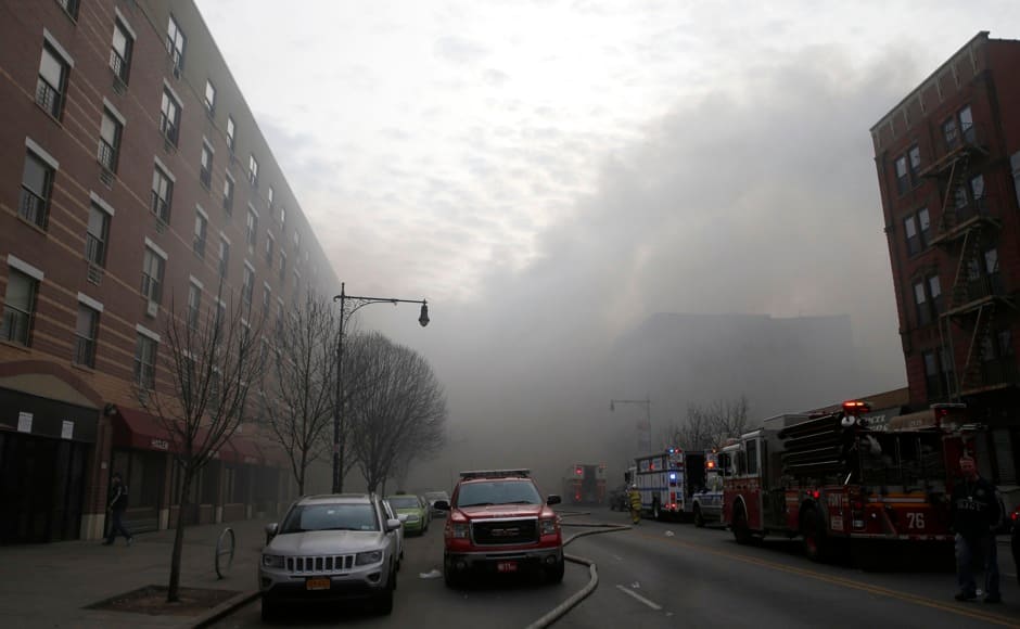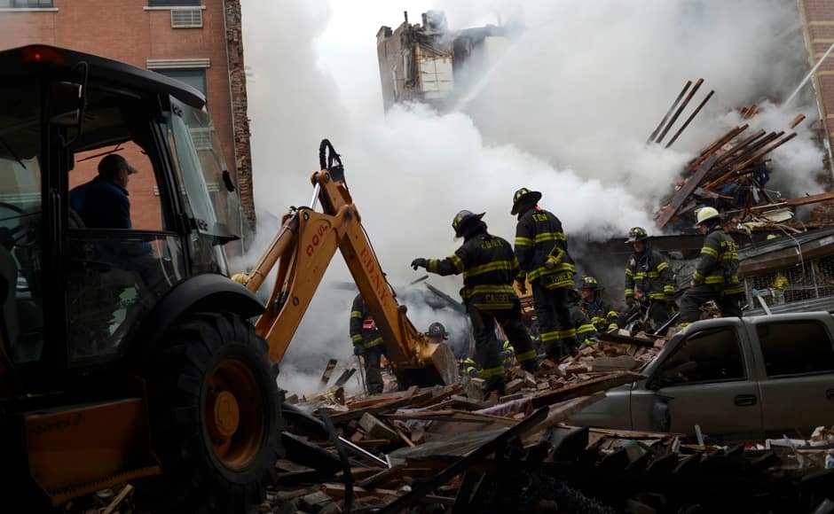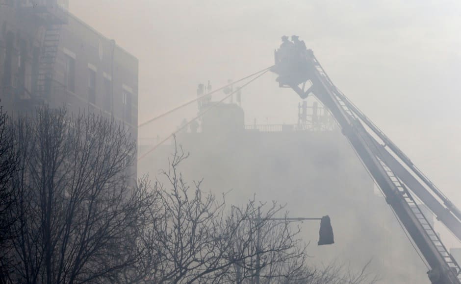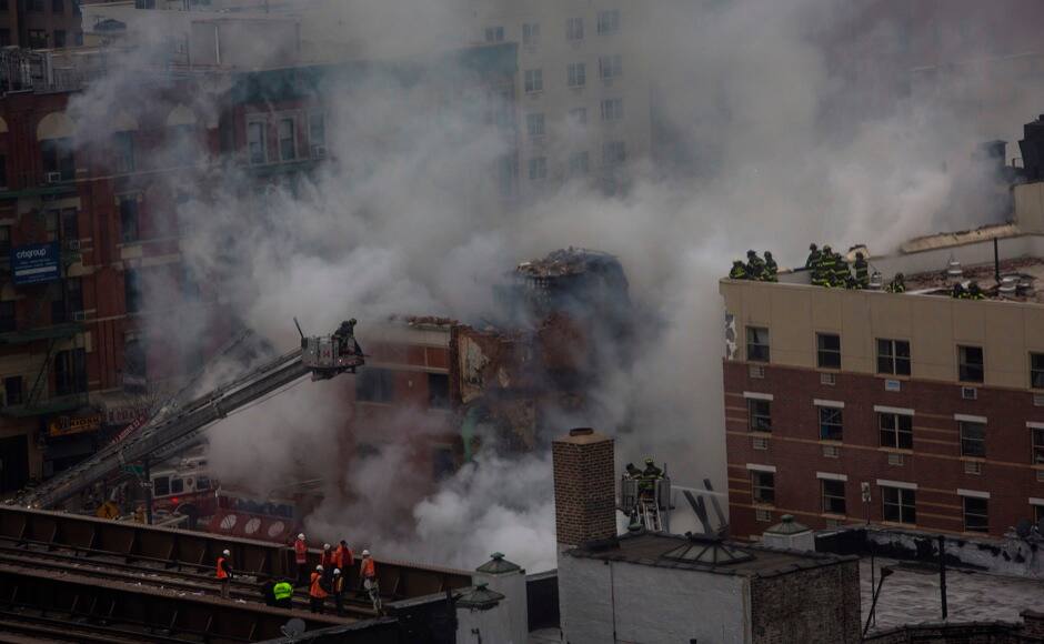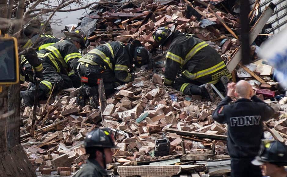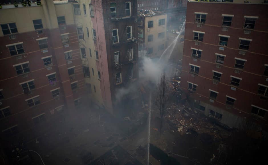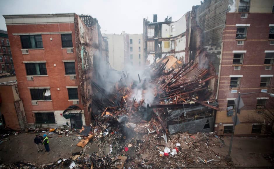 [caption id=“attachment_1432241” align=“alignleft” width=“940”]  Firemen continue to spray water on the rubble at an apparent building explosion and collapse in the Harlem section of New York, in this picture provided by the New York City Mayor’s Office March 12, 2014. Two New York buildings collapsed on Wednesday in an explosion believed to be caused by a gas leak, killing two people, injuring at least 22, and setting off a search for more feared trapped in the debris, officials said. Reuters.[/caption] [caption id=“attachment_1432243” align=“alignleft” width=“940”]  A victim is evacuated by emergency personnel near an apparent building explosion fire and collapse in the Harlem section of New York City, March 12, 2014. A building collapsed in a largely residential block of Upper Manhattan on Wednesday and the New York City Fire Department was searching for anyone trapped in the debris, officials said. Reuters[/caption] [caption id=“attachment_143224” align=“alignleft” width=“940”]  A man carries a child wrapped in a blanket on East 116th street away from an apparent building explosion fire and collapse in the Harlem section of New York City. Reuters.[/caption] [caption id=“attachment_143224” align=“alignleft” width=“940”]  Firefighters try to extinguish a fire at the site of a building collapse in Harlem. Reuters.[/caption] [caption id=“attachment_143225” align=“alignleft” width=“940”]  A firefighter stands in smoke filled East 116th street near an apparent building explosion fire and collapse in the Harlem section of New York. Reuters.[/caption] [caption id=“attachment_143225” align=“alignleft” width=“940”]  Residents watch from the side lines of a building collapse in Harlem. Reuters.[/caption] [caption id=“attachment_143225” align=“alignleft” width=“940”]  A victim is evacuated by emergency personal near an apparent building explosion fire and collapse in the Harlem section of New York City. Reuters.[/caption] [caption id=“attachment_143225” align=“alignleft” width=“940”]  Fire fighters on East 116th street pour water on an apparent building explosion fire and collapse in the Harlem section of New York City. Reuters.[/caption] [caption id=“attachment_143225” align=“alignleft” width=“940”]  Firefighters search through debris and rubble at the site of a building collapse and fire in Harlem. Reuters.[/caption] [caption id=“attachment_143226” align=“alignleft” width=“940”]  Fire fighters walk on East 116th street near an apparent building explosion fire and collapse in the Harlem section of New York City. Reuters.[/caption] [caption id=“attachment_143226” align=“alignleft” width=“940”]  Smoke fills East 116th street near an apparent building explosion fire and collapse in the Harlem section of New York City. Reuters.[/caption] [caption id=“attachment_143226” align=“alignleft” width=“940”]  New York City firefighters examine the rubble at an apparent building explosion fire and collapse in the Harlem section of New York. Reuters.[/caption] [caption id=“attachment_143226” align=“alignleft” width=“940”]  Sign is seen on a church door near the rubble of an apparent building explosion fire and collapse in the Harlem section of New York. Reuters.[/caption] [caption id=“attachment_143227” align=“alignleft” width=“940”]  Firemen stand in the rubble at an apparent building explosion fire and collapse in the Harlem section of New York. Reuters.[/caption] [caption id=“attachment_143227” align=“alignleft” width=“940”]  New York City firefighters dig through rubble of a building explosion and collapse in the Harlem section of New York. Reuters.[/caption] [caption id=“attachment_143227” align=“alignleft” width=“940”]  Shards of glass are seen next to wilted flowers outside St. Paul’s Roman Catholic Church near the site of a building collapse in Harlem, New York. Reuters.[/caption] [caption id=“attachment_143227” align=“alignleft” width=“940”]  People stand near rubble at an apparent building explosion and collapse in the Harlem section of New York. Reuters.[/caption] [caption id=“attachment_143227” align=“alignleft” width=“940”]  New York City firefighters spray water onto the rubble at an apparent building explosion and collapse in the Harlem section of New York. Reuters.[/caption] [caption id=“attachment_143228” align=“alignleft” width=“940”]  New York City firefighters work at the site of a building explosion and collapse in the Harlem section of New York. Reuters. [/caption] [caption id=“attachment_143228” align=“alignleft” width=“940”]  New York City firefighters examine the rubble at a building explosion and collapse in the Harlem section of New York. Reuters. [/caption] [caption id=“attachment_143228” align=“alignleft” width=“940”]  A Metro North passenger uses his phone as he passes by the site of a building explosion and collapse, in the Harlem section of New York. Reuters.[/caption] [caption id=“attachment_143228” align=“alignleft” width=“940”]  A view of the site of an explosion and collapse of two buildings in the Harlem section of New York. Reuters. [/caption]