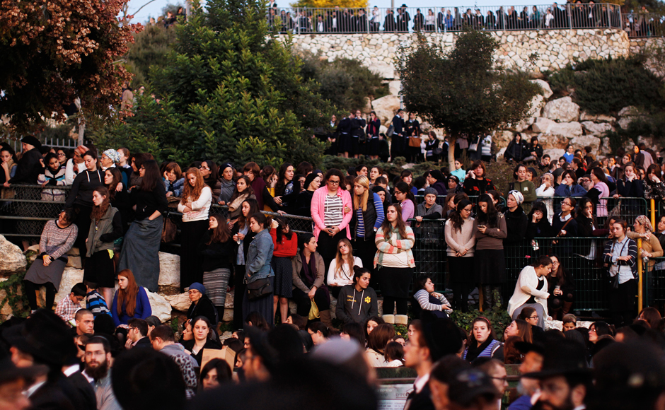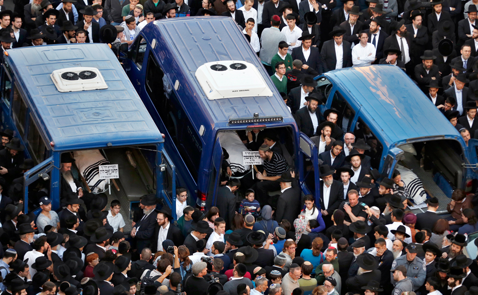 Israelis attend the funeral of Aryeh Kopinsky, Calman Levine and Avraham Shmuel Goldberg in Jerusalem. The three were killed in the attack which has left Jerusalem shaken up as Prime Minister Benjamin Netanyahu vowed a harsh response. Reuters