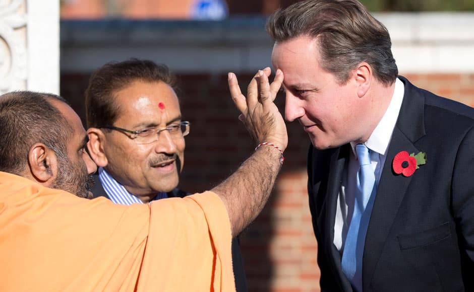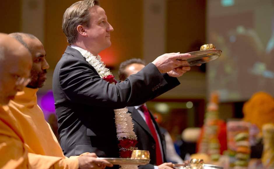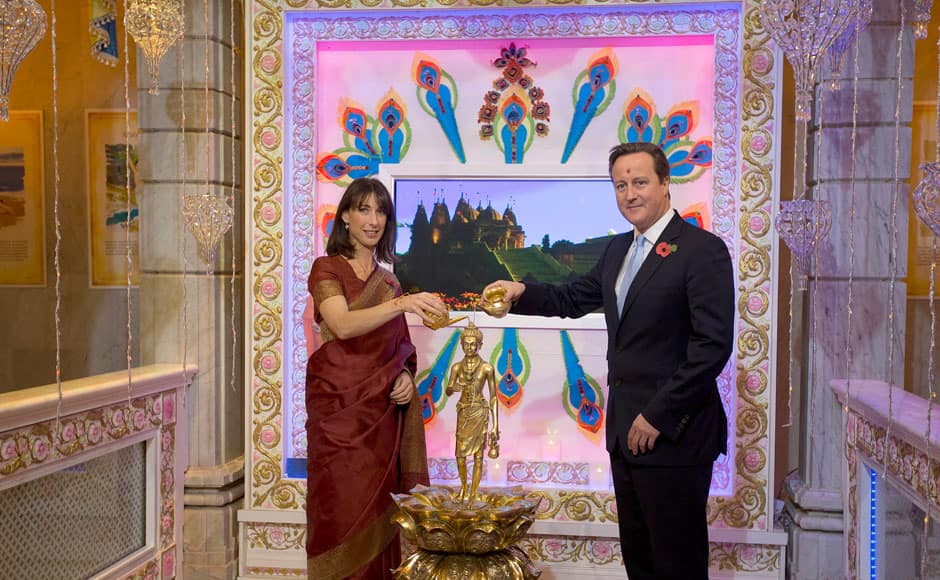 [caption id=“attachment_1213217” align=“alignleft” width=“940”]  Britain’s Prime Minister David Cameron makes an offering of fruit during a ceremony to mark Diwali at the Hindu temple Shri Swaminarayan Mandir in London. REUTERS[/caption] [caption id=“attachment_1213219” align=“alignleft” width=“940”]  Samantha Cameron, wife of British Prime Minister David Cameron, greets a group of young women during a visit to the Hindu temple Shri Swaminarayan Mandir in London. REUTERS[/caption] [caption id=“attachment_1213221” align=“alignleft” width=“940”]  Britain’s Prime Minister David Cameron,takes part in a ceremony at the Hindu temple the Shri Swaminarayan Mandir, during Diwali, in London. REUTERS[/caption] [caption id=“attachment_1213223” align=“alignleft” width=“940”]  Samantha Cameron (L), wife of British Prime Minister David Cameron, takes part in a ceremony to mark Diwali with Rena Amin, a leading women’s volunteer at the Hindu temple Shri Swaminarayan Mandir in London. REUTERS[/caption] [caption id=“attachment_1213225” align=“alignleft” width=“940”]  British Prime Minister David Cameron looks up as he stands with his wife Samantha Cameron during a visit to the Hindu temple Shri Swaminarayan Mandir in London. REUTERS[/caption] [caption id=“attachment_1213227” align=“alignleft” width=“940”]  Britain’s Prime Minister David Cameron and his wife Samantha pose for a photograph as they pour water on a Hindu deity as they arrive for a visit to the Hindu temple the Shri Swaminarayan Mandir, during Diwali. REUTERS[/caption] [caption id=“attachment_1213229” align=“alignleft” width=“940”]  Britain’s Prime Minister David Cameron is adorned with a “tika”, a mark on the forehead, upon arrival during Diwali at the Hindu temple Shri Swaminarayan Mandir in London. REUTERS[/caption]
