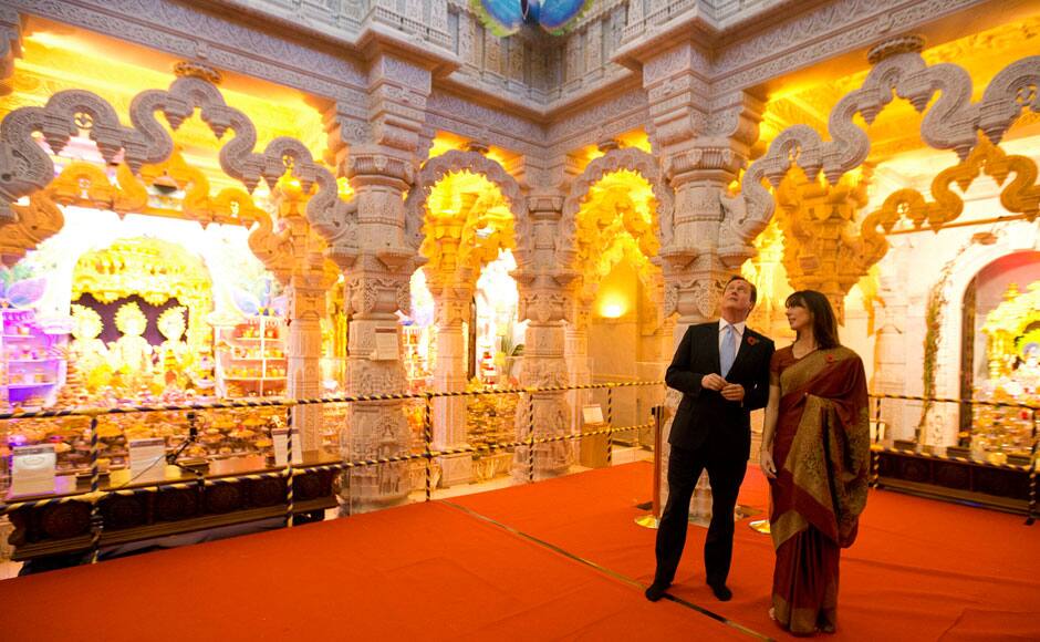 British Prime Minister David Cameron and his wife Samantha Cameron visited the Hindu temple Shri Swaminarayan Mandir in London for Diwali. Here are the pictures