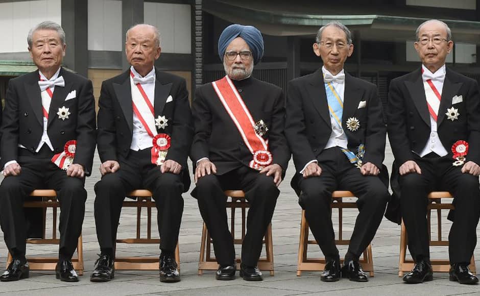 [caption id=“attachment_1788777” align=“alignleft” width=“940”]  Escorted by a Japanese official, former Indian prime minister Manmohan Singh and his wife Gursharan Kaur head for a photo session at the Imperial Palace. AFP[/caption] [caption id=“attachment_1788779” align=“alignleft” width=“940”]  Manmohan Singh pictures here with Japanese recipients of the Grand Cordon of the Order of the Paulownia Flowers medal, one of Japan’s highest civilian awards. AFP[/caption] [caption id=“attachment_1788781” align=“alignleft” width=“940”]  Manmohan Singh and his wife Gursharan Kaur pose with former Australian ambassador to Japan Alistar Murray McLean during a photo session at the Imperial Palace. Singh was awarded Japan’s second highest civilian honour – the Grand Cordon of the Order of the Paulownia Flowers on 5 November. AFP[/caption]