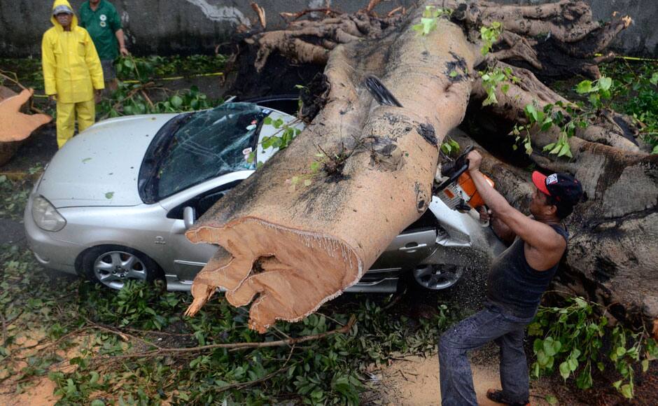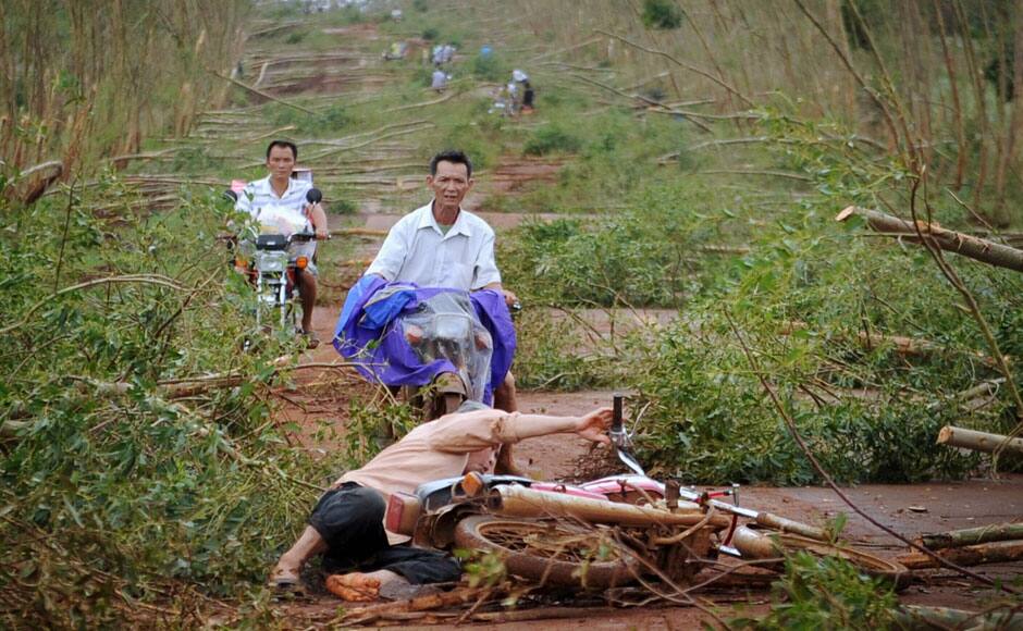 [caption id=“attachment_1626855” align=“alignleft” width=“940”]  A man pushes his electric bicycle against strong wind and heavy rainfalls along a flooded seaside street as Typhoon Rammasun hits Haikou, Hainan province. A super typhoon slammed into China on Friday killing at least 18 people according to latest reports. person. The storm had already killed at least 64 people in the Philippines. Rammasun made landfall at Wenchang city on south China’s island province of Hainan on Friday afternoon. Picture taken on July 18, 2014. Reuters[/caption] [caption id=“attachment_1626857” align=“alignleft” width=“940”]  A resident falls off his motorcycle after riding into fallen tree branches along a street, after Typhoon Rammasun hit Zhanjiang, Guangdong province July 19, 2014. Reuters[/caption] [caption id=“attachment_1626859” align=“alignleft” width=“940”]  A fisherman paddles a makeshift boat to check his fish farms after Typhoon Rammasun hit Leizhou, Guangdong province. Reuters[/caption] [caption id=“attachment_1626861” align=“alignleft” width=“940”]  Residents look at a fallen tree after Typhoon Rammasun hit Longtang township of Zhanjiang, Guangdong province July 19, 2014. Reuters[/caption] [caption id=“attachment_1626863” align=“alignleft” width=“940”]  Dolls and stuffed toys are hung for drying at a damaged house two days after the onslaught of Typhoon Rammasun (locally named Glenda) in Gumaca, Quezon province south of Manila. Reuters[/caption] [caption id=“attachment_1626865” align=“alignleft” width=“940”]  A resident climbs on a bridge destroyed during the onslaught of Typhoon Rammasun, (locally named Glenda) in Batangas city south of Manila. Reuters[/caption] [caption id=“attachment_1626867” align=“alignleft” width=“940”]  A worker uses an electric saw to remove a huge tree that fell on top of a car during the onslaught of Typhoon Rammasun, (locally named Glenda) that hit Makati city in Manila. Reuters[/caption] [caption id=“attachment_1626869” align=“alignleft” width=“940”]  Typhoon victims stand outside their homes damaged by Typhoon Rammasun (locally named Glenda) in a village of sea gypsies, also known as Badjaos, in Batangas city, south of Manila. Reuters[/caption] [caption id=“attachment_1626873” align=“alignleft” width=“940”]  Fishing boats are pictured amid heavy winds and rain brought by Typhoon Rammasun (locally named Glenda) as it hit the town of Imus, Cavite southwest of Manila. Philippine authorities evacuated almost 150,000 people from their homes and shuttered financial markets, government offices, businesses and schools on Wednesday as typhoon Rammasun gathered strength and hit the capital, Manila. Reuters[/caption]