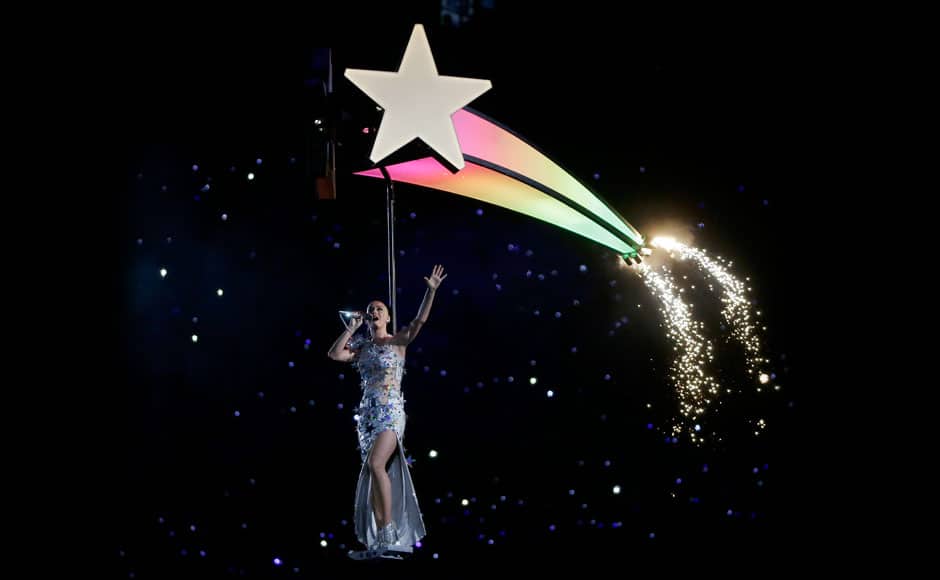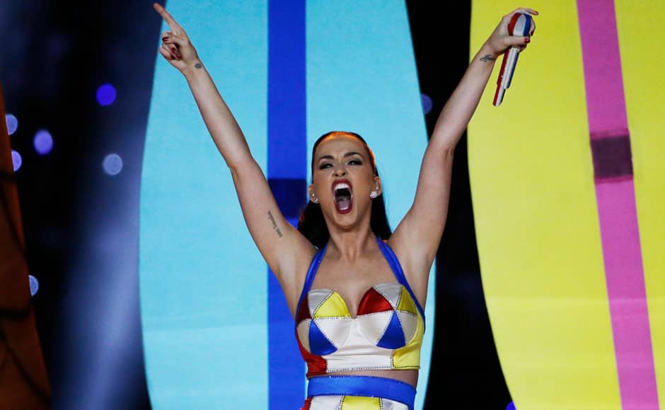 [caption id=“attachment_2074767” align=“aligncenter” width=“940”]  Katy Perry, right, and Lenny Kravitz perform during halftime of NFL Super Bowl XLIX football game. Katy Perry’s Super Bowl halftime show Sunday, with its colourful visual effects, was a success thanks to a variety of elements, the most memorable of which is the robotic tiger. AP[/caption] [caption id=“attachment_2074769” align=“aligncenter” width=“940”]  And here is Katy Perry on a robotic tiger. By far, the biggest win of her performance. We’re wondering though what would have happened had this tiger gone all Terminator crazy. Hopefully that rope-leash would have been enough for Perry to handle him. AP[/caption] [caption id=“attachment_2074777” align=“aligncenter” width=“940”]  And more shots of Katy Perry on her glorious robot tiger. Notice the red eyes of the tiger. AP[/caption] [caption id=“attachment_2074773” align=“aligncenter” width=“940”]  We have to admit the patterns on her blouse are a little odd. In a very disturbing way, it reminds you of a beach ball. AP[/caption] [caption id=“attachment_2074775” align=“aligncenter” width=“940”]  And more singers dressed like robots. Dress rehearsals in those things must have been a pain. Katy Perry, on the other hand, looks like a hot-wheels car set. AP[/caption] [caption id=“attachment_2074771” align=“aligncenter” width=“940”]  Katy Perry can float, and is literally turned into a firework for this performance. Because, well, that’s the name of her song. AP[/caption] [caption id=“attachment_2074781” align=“aligncenter” width=“940”]  Here is a closer look at Katy Perry aka the Human firework, as she performs her song. Thankfully there were no fire-hazards in this performance. AP[/caption]