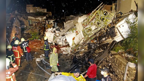 A TransAsia Airways flight GE222 which crashed while attempting to land in stormy weather in Taiwan on the island of Penghu.