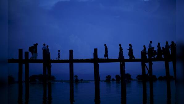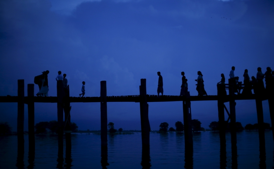 8 October: People cross U Bein bridge over Tuangthaman Lake in Mandalay, Myanmar. Reuters/Jorge Silva