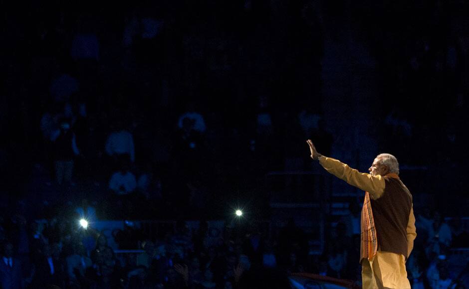 Just as the organizers had advertised, Prime Minister Narendra Modi’s public interaction with the Indian diaspora at Ricoh Coliseum here on Wednesday had all the trappings of a rockstar concert as Bollywood singer Sukhwinder Singh, Shiamak Davar troupe and other groups set the tone for the evening. (Image courtesy: AP)