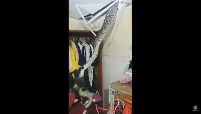 Few creatures inspire more fear in human beings than a snake. Now, imagine finding one of them in your ceiling. This viral clip, put out by a channel called ViralHog, shows a rescue worker extracting a large snake, measuring several feet, from a ceiling. The clip shows a rescue worker slowly peeling off a section of the ceiling. The ceiling cracks to reveal an enormous snake. The man then takes the creature by the tail, but when he tries to remove it , the whole section of the ceiling cracks and falls. The reptile crashes onto a chest of drawers in the room. As the rescue worker pulls the snake towards him, the creature tries to attack. The man tries to distract the reptile using his cap, but fails. The snake then falls to the ground, allowing the rescue worker to capture it after a few tries. The video, which was uploaded on 6 August, has left viewers stunned. Several social media users tried to figure out the location of the video and the species of the snake. Others were terrified, thinking of possibilities if the reptile had attacked the residents of the house. This is not the first time involving humans and snakes that has gained traction on social media. In July, a family in Georgia, USA, discovered that the space underneath their bed was home to 18 snakes. The reptiles were discovered when the family thought they saw something fuzzy on the floor and bent to pick it up.