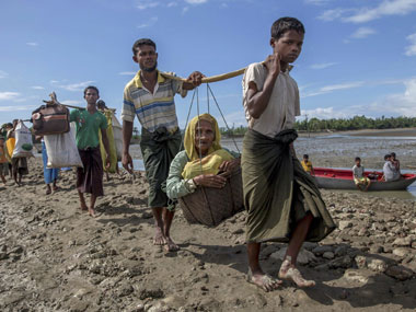 Representational image. AP/PTI[/caption] Nearly 410,000 members of the Rohingya Muslim minority fled from Myanmar’s western Rakhine state to Bangladesh to escape a military offensive that the United Nations has branded a “textbook example of ethnic cleansing”. “Many people are arriving hungry, exhausted and with no food or water,” Mark Pierce, Bangladesh country director for the Save the Children aid agency said in a statement. “I’m particularly worried that the demand for food, shelter, water and basic hygiene support is not being met due to the sheer number of people in need. If families can’t meet their basic needs, the suffering will get even worse and lives could be lost.” Bangladesh has for decades faced influxes of Rohingya fleeing persecution in Buddhist-majority Myanmar, where the Rohingya are regarded as illegal migrants. Bangladesh was already home to 400,000 Rohingya before the latest crisis erupted on 25 August, when Rohingya insurgents attacked police posts and an army camp in the western state of Rakhine, killing a dozen people. Pierce said the humanitarian response needed to be rapidly scaled up. “That can only be done if the international community steps up funding,” he said. Rights monitors and fleeing Rohingya say Myanmar security forces and Rakhine Buddhist vigilantes responded to the 25 August insurgent attacks with what they say is a campaign of violence and arson aimed at driving out the Muslim population. Myanmar rejects that, saying its security forces are carrying out clearance operations against the insurgents of the Arakan Rohingya Salvation Army, which claimed responsibility for the August attacks and similar, smaller, raids in October. The Myanmar government has declared the group a terrorist organisation and accused it of setting the fires and attacking civilians. Bangladesh border guards said the flow of refugees leaving Myanmar had eased off over the past day, apparently because bad weather had discouraged people from taking to boats to reach Bangladesh. Suu Kyi address Heavy rain has turned roads into mud, with refugees huddling under shelters of bamboo and plastic sheets beside them. Bangladeshi authorities said they had started moving an estimated 100,000 Rohingya living by the roads to camps designated as aid points. “We’re not allowing any distribution to anyone from the side of the road,” said district government official Kazi Abdur Rahman. “We want to convince them there’s everything in the camp and nothing here.” A big new camp is planned but it is unclear how long it would take to build. “People are living in these muddy, awful conditions. You have to get them to some sort of space where aid can be delivered,” said Chris Lom of the International Organization for Migration. “Clean water and sanitation can only be delivered in a structured environment.” There is no sign that violence has stopped in Myanmar, with smoke, apparently from burning villages, seen as recently as Friday, meaning more refugees are likely to cross. Human Rights Watch said satellite imagery showed 62 Rohingya villages had been torched since the violence erupted. Myanmar says more than 430 people have been killed, most of them insurgents, and about 30,000 non-Muslim villagers have been displaced. Myanmar government leader and Nobel laureate Aung San Suu Kyi has faced a barrage of criticism from abroad for not stopping the violence. The military remains in full control of security policy and there is little sympathy for the Rohingya in a country where the end of army rule has unleashed old animosities, and the military campaign in Rakhine State is widely supported. Suu Kyi is due to make her first address to the nation on the crisis on Tuesday. Her foreign supporters and Western governments that backed her campaign against military rule, and see her as the best hope for Myanmar’s future, will be hoping to see her make a commitment to protect the rights of the Muslim minority. Suu Kyi’s supporters at home could be disappointed if she is perceived to be caving in to foreign pressure and taking the side of a Muslim minority blamed for initiating the violence. The United States has called for the protection of civilians and a deputy assistant secretary of state, Patrick Murphy, is due in Myanmar this week. He will travel to Sittwe, the capital of Rakhine State, to meet government officials and representatives of different communities, including Rohingya, but he is not seeking to travel to the conflict zone in northern Rakhine State. The military has called for unity on the issue. The political party founded by retired officers and trounced by Suu Kyi’s party in the 2015 election, could be expected to take heart to see her support eroded by the crisis.