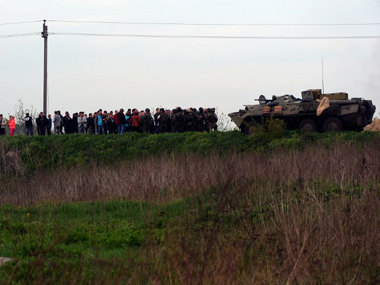 Residents gather to speak to Ukrainian soldiers at a checkpoint which they seized in the village of Andreevka, close to the southern Ukrainian city of Slaviansk. AFP.[/caption] Other Ukrainian officials and the separatist leader in Slaviansk had said earlier that one airman was taken prisoner. A third helicopter, an Mi-8 transport aircraft, was also hit and a serviceman wounded, the Defence Ministry said. The SBU security service said this helicopter was carrying medics. Eight hours after Reuters journalists in Slaviansk heard shooting break out and saw one helicopter opening fire, the city of 130,000 was quiet, with shops shut and armed separatists in control of the streets while Ukrainian forces in armoured vehicles had taken up positions on the outskirts of town. Ukrainian officials said troops overran rebel checkpoints around the city in an operation launched before dawn and it was now “tightly encircled”. They pointed to the heavy fire that hit the helicopters as proof of the presence of Russian forces, despite repeated denials from Moscow that it has troops on the ground or is controlling the uprising. Putin’s spokesman heaped blame on the Ukrainian government, which took power two months ago after pro-Western protests forced the Kremlin-backed elected president to flee to Russia. Noting that Putin had warned before that any “punitive operation” would be a “criminal act”, Dmitry Peskov told Russian news agencies that this was what had now happened at Slaviansk, where separatists seeking independence or annexation by Moscow are holding seven foreign European military observers. Saying Putin had sent an envoy, Vladimir Lukin, to southeast Ukraine to negotiate their release, Peskov said that Lukin had not been heard from since the Ukrainian operation began. “While Russia is making efforts to de-escalate and settle the conflict, the Kiev regime has turned to firing on civilian towns with military aircraft and has begun a punitive operation, effectively destroying the last hope of survival for the Geneva accord,” he said, referring to a deal on 17 April signed by Russia, Ukraine, the United States and the European Union. Under that agreement, separatists were supposed to lay down their arms and vacate the public buildings they have seized in about a dozen towns they have seized across the Russian-speaking east. Since then, however, they have tightened their grip. Barricades Gunmen in Slaviansk said they were holding their ground against Ukrainian forces that have struggled to assert control over the past month. Some threw up new barricades of felled trees. And dozens of civilians blocked a road against a unit of Ukrainian armoured vehicles, telling troops to go home. Reuters journalists in the city heard shooting from shortly after 4 am (0100 GMT) and saw a military helicopter open fire. Towards midday, the city was quiet, shops were shut but rebel gunmen appeared to be still in tight control of the streets. Ukrainian troops were at a halt in the suburbs. The SBU said the deadly use by the separatists of shoulder-launched anti-aircraft missiles was evidence that “trained, highly qualified foreign military specialists” were operating in the area “and not local civilians, as the Russian government says, armed only with guns taken from hunting stores”. Russia denies involvement but has massed troops on the border and threatened to intervene to protect the Russian-speaking majority in eastern Ukraine from what it calls an illegitimate, Western-backed government in Kiev. Alarmed Western powers believe President Vladimir Putin is set on asserting Moscow’s influence over its former Soviet neighbours. Armed groups seeking union with Russia have seized a number of government buildings in towns in eastern Ukraine. The action in Slaviansk appeared to mark the heaviest military response by Kiev since it tightened a cordon around the city a week ago. “They wanted to carry out some small-scale tactical operations just to scare the people,” said a militant manning a checkpoint leading to the army-held airfield. “But so far things have not worked out the way they wanted.” On his Facebook page, Interior Minister Arsen Avakov posted: “The goal of our anti-terrorist operation and, at the same time, our demands to the terrorists are simple: Free the hostages, lay down weapons, vacate administrative buildings and get municipal infrastructure back to normal.” He added: “We are ready to negotiate with the protesters and their representatives. But terrorists and armed separatists (will get) only inevitable retribution.” He urged local people to stay indoors and said Ukrainian forces, from the Interior Ministry, National Guard and the armed forces, had orders not to fire on residential buildings. Support for the separatist movement is patchier in eastern Ukraine than it was among the majority ethnic Russian population of Crimea, which Moscow seized and annexed in March. However, many are fearful of the new authorities in Kiev and have little faith in Ukraine after 23 years of post-Soviet independence marked by rampant corruption and poor living standards. “Shells came into my garden,” said one local man, Gennady. “They say that they have come to defend us. But who from?” he said of the Ukrainian forces. “Civilians must stop them.” On the town’s southern outskirts, eight Ukrainian armoured personnel carriers cut off the road but faced a cordon two deep of local residents shouting at them to go home. >May Day The clashes around Slaviansk came only hours after Russia staged a huge May Day parade on Moscow’s Red Square on Thursday - its first since the Soviet era - with workers holding banners proclaiming support for Putin after the seizure of territory from neighbouring Ukraine. On Wednesday, Ukraine’s leaders - who came to power in February when the previous Moscow-backed president was toppled after months of protests - conceded they were “helpless