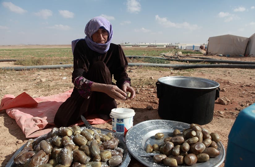 Eggplant is the staple diet of the refugees. Photo courtesy: Filippo Sbalchiero/Peacebuilding Project in Jordan/IAHV[/caption] A common thread binds them: A bridge build by an engineer can help people escape a war, the injured can be treated by doctors, teachers can visit classes — their schools in Syria were mostly without teachers — and soldiers can guard them from death. Tahan Ali, 45, a Jordanian volunteer, said the preferences of the children reflect their traumatised lives. “They cannot think of anything else… like becoming a manager of a firm, or a writer, even entrepreneurs. Safety is uppermost in their minds.” Some children take the help of a translator to share horror stories of how they escaped the war with their parents, who sold everything they had at home to raise cash for cabs to the border. And three times a week, the refugees spread yoga mats to attend classes conducted by volunteers from the International Association of Human Values (IAHV), a humanitarian organisation. Nearby, armed soldiers stand guard and frisk everyone for valid documents. The camps, claim IAHV volunteers, conduct yoga and meditation sessions to beat stress. Soothing music from portable speakers wafts across the room as the refugees try out various asanas. There are some who give up almost instantly, only to be pushed back on track by the volunteers. “These programmes incorporate art, movement, and mindful yoga,” says Christian Matta, an IAHV trainer. He says yoga and meditation are the only answer to beat stress in the camps, especially over the refugees’ uncertain future. “They do not know when they will return to their homes; they know their homes have been reduced to rubble, that they will continue to live in one of the world’s most volatile zones where death is routine,” says Matta. IAHV, set up by Indian spiritual guru Sri Sri Ravi Shankar, aims to provide the refugees relaxation and social support while also reducing symptoms of anxiety, depression and post-traumatic stress disorder. The situation is depressing. Preliminary results of various studies to determine the mental health impact of civil war trauma on Syrian refugees indicate that 30 percent of adults experience post-traumatic stress disorder, and 50 percent experience depression. Worse, nearly 70 percent of Syrian children show signs of high anxiety because of the trauma. The ones undergoing the courses are lucky, those unable to cross the border are living in hell. Jordan sealed its northern and eastern borders after six soldiers were killed in June last year in a suicide bombing outside a Syrian refugee camp in Rukban, on the isolated desert border with Syria. Now, everything is stuck. [caption id=“attachment_4271205” align=“alignnone” width=“825”]