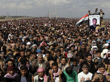 Baghdad: Tens of thousands of Sunni Muslims have gathered in several Iraqi cities to protest against what they describe as unfair treatment by the country’s Shiite-led government. In the western cities of Fallujah and Ramadi, former insurgent strongholds, demonstrators blocked the main highway to Jordan and Syria to perform Friday noon prayers. Others gathered in main squares in the northern cities of Samarra and Mosul, and outside a prominent Sunni mosque in the Baghdad. [caption id=“attachment_627008” align=“alignleft” width=“380”]  Sunni Muslims protest against the government. AP[/caption] In the capital, security forces blocked roads leading from Sunni-dominated provinces and sealed off all Sunni neighborhoods. Sunnis have staged mass rallies since late December, demanding Shiite Prime Minister Nouri al-Maliki step down and calling for an end to raids in their areas and measures against former regime officials, as well as for the release of prisoners. AP