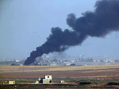 Ras al-Ain: Turkish soldiers and militia allies battled their way into a strategic Kurdish border town on Saturday as they stepped up their assault on northeastern Syria in defiance of mounting international protests and threats of US sanctions. After overnight clashes with Kurdish forces in the countryside, Turkish troops and their Syrian allies entered the battleground town of Ras al-Ain, sources on both sides said. Turkey’s defence ministry hailed its forces’ capture of the first Kurdish-held town on the fourth day of their offensive. But Ras al-Ain’s Kurdish defenders denied the semi-deserted town had fallen and an AFP correspondent said Turkish troops and their Syrian allies had entered but had yet to capture it. [caption id=“attachment_7474481” align=“alignleft” width=“380”]  Smoke billows from a fire inside Syria during bombardment by Turkish forces 9 October 2019. AP[/caption] The Kurdish-led Syrian Democratic Forces (SDF), who were the main partner on the ground in the US-led campaign against the Islamic State group, called on the United States to assume its “moral obligations” and protect them. US President Donald Trump has faced a firestorm of criticism, even from his own domestic supporters, for abandoning a loyal ally and stands accused of giving Turkey a green light to launch the offensive after ordering American troops to pull back from the border. The Syrian Observatory for Human Rights said pro-Ankara fighters “executed” at least nine civilians on Saturday near the town of Tal Abyad, another key target of the cross-border assault. The Kurds said a female Kurdish party official and her driver were among those killed. On the battlefield, SDF fighters have taken mounting losses against the vastly superior firepower of the Turkish army. At least 23 SDF fighters have been killed, bringing the over death toll since the Turkish offensive began on Wednesday to 81, said the Syrian Observatory monitoring group. Turkish airstrikes on Kurdish-held towns and intense artillery exchanges caused mounting casualties on both sides of the border. Civilian exodus On the Syrian side at least 38 civilians have been killed, the Britain-based Observatory said, and 18 civilians inside Turkey have died from Kurdish shelling, according to Turkish reports. Four Turkish soldiers have been killed, Turkey’s defence ministry and state-run Anadolu news agency said, while the Observatory said the Kurds have lost control of 27 villages since Wednesday. The towns of Ras al-Ain and Tal Abyad further west have been primary goals of the Turkish offensive and have both come under heavy bombardment. They lie at either end of a section of the border which although Kurdish-controlled has an ethnic Arab majority. Ankara says its forces’ mission is to establish a safe zone run by its mainly Arab Syrian allies in which some of the 3.6 million mostly Arab refugees from Syria can be rehoused. But the Kurds say the Turkish invasion amounts to an attempt to redraw the ethnic map of the region at their expense. The operation has so far displaced some 100,000 people, according to the United Nations. Roads leading out of the area have been filled with fleeing civilians, some on foot, other in vehicles piled high with their belongings. “We always get displaced no matter where we go,” Yusra al-Saleh, 38, who fled the violence along Syria’s northern border, said. The Kurdish Red Crescent said it would no longer dispatch medical teams to Ras al-Ain because its ambulances are being hit by Turkish fire. Aid groups have warned of yet another humanitarian disaster in Syria’s eight-year-old war if the offensive is not halted. Most of those fleeing were heading east towards the city of Hasakeh. “Turkey’s aim is to prevent further fleeing Syrian civilians from entering Turkey rather than genuinely providing protection,” Human Rights Watch. The SDF lost 11,000 fighters in the protracted US-led campaign against IS before finally overrunning the jihadists’ self-proclaimed “caliphate” in March. Trump warnings unheeded On Saturday, the SDF decried being “abandoned” by Washington. “We call on our allies to fulfil their duties and assume their moral obligations,” it said. The offensive has sparked international condemnation and Trump toughened his policy towards Ankara, threatening on Friday crippling sanctions if the operation goes too far. On Saturday, Germany and France said they were halting sales of weapons to Turkey, after Paris, a key partner in the US-led anti-IS coalition, threatened sanctions against Ankara. Arab foreign ministers, at an Arab League meeting in Cairo, joined in the condemnation of Turkey’s “aggression in Syria” they termed a “direct threat to Arab national security”. In Europe, thousands of people, many waving Kurdish green, red and yellow flags, took to the streets of Paris and several other cities in protest at the assault. Turkish President Recep Tayyip Erdogan has remained defiant and the Pentagon has reported no progress in its belated efforts to persuade Ankara to halt the assault. Turkey is still far from having reached the goals of its military invasion but the risk appears to be growing that detained IS fighters could break free. Kurdish officials said five IS prisoners managed to escape Friday from a facility in the border city of Qamishli housing mostly foreign jihadists after shelling struck nearby. The Kurdish administration says some 12,000 men are held in seven detention centres across Kurdish-controlled areas. The US says it has already plucked two of the most high-profile IS jihadists to have been captured and spirited them out of Syria.