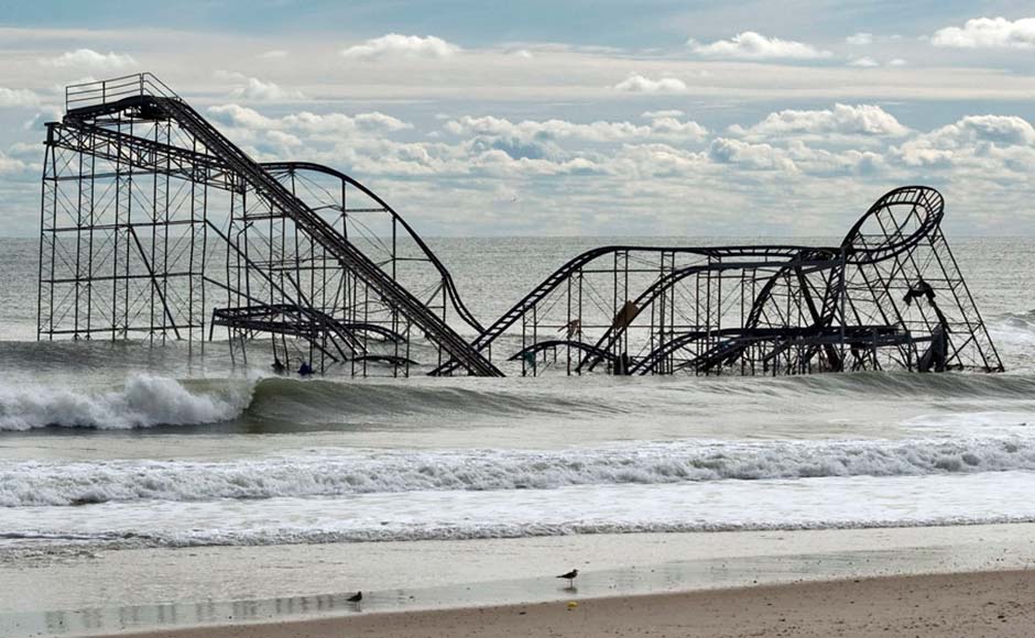 The remnants of a roller coaster sit in the surf three days after Hurricane Sandy came ashore in Seaside Heights, New Jersey 1 November. Steve Nesius/Reuters