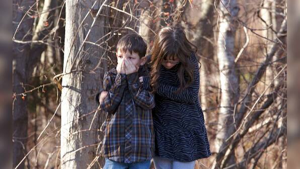 First-grader Henry Terifay and his sister, fourth-grader Kelly Terifay, wait outside Sandy Hook Elementary School after a shooting in Newtown, Connecticut. Michelle Mcloughlin/ Reuters
