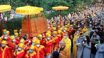 Hanoi: A funeral was held Saturday for the Vietnamese Buddhist monk Thich Nhat Hanh, a week after the renowned Zen master and peace activist died at the age of 95 in Hue in central Vietnam. Thousands of monks and disciples trailed a procession of pallbearers carrying Nhat Hanh’s coffin from Tu Hieu Pagoda, where he spent his last days, to the cremation site. Others kneeled and clasped their hands in prayer on the roadside and bowed to the ground as the casket went past. Nhat Hanh was globally recognized for spreading the practice of mindfulness and socially engaged Buddhism, particularly in the West. For most of his life, he lived in exile at Plum Village, a retreat center he founded in southern France. Born Nguyen Dinh Lang in 1926 in Hue and ordained at the age of 16, Nhat Hanh distilled Buddhist teachings on compassion and suffering into easily grasped guidance over a lifetime dedicated to working for peace. His campaign against the Vietnam War in the 1960s led to him being barred from returning to both North and South Vietnam. He was only allowed back into the country in 2005, when the communist-ruled government welcomed him back in the first of several visits. Surviving a stroke in 2014 that left him unable to speak, Nhat Hanh returned home in October 2018, spending his final years at the Tu Hieu Pagoda. During the seven-day wake, Nhat Hanh was laid in state in Tu Hieu Pagoda’s full moon reception hall, where his disciples came to pay respect in silence and practice meditation as a tribute to his teachings. “I am happy and feel at peace that I could come to Hue to say farewell and meditate with ‘Su Ong’ for the last time,” said Do Minh Hieu, a follower of Nhat Hanh’s who traveled from southern Ho Chi Minh City with his family for the funeral. “Su Ong” is an affectionate Vietnamese term meaning “Grandpa Monk.” According to his wishes, Nhat Hanh will be cremated and his ashes will be scattered at Plum Village centers and monasteries around the world.
