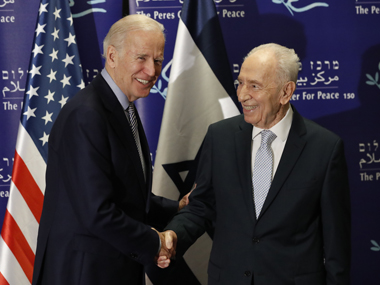US Vice President Joe Biden (L) shakes hands with former Israeli president Shimon Peres during a meeting on March 8, 2016 at the Peres Centre for Peace in Tel Aviv. Biden will hold talks with Israeli Prime Minister Benjamin Netanyahu and Palestinian president Mahmud Abbas. AFP[/caption] Police said the attacker wounded a number of people in the Jaffa port area, a tourist zone of Israel’s commercial capital, before going on toward a restaurant and stabbing others. Around a 15-minute walk from where the stabbings occurred, Biden met former Israeli president Shimon Peres. “I heard two guys screaming that there was an attack,” said a woman who gave her name as Emily. “I ran in the opposite direction and ran into a man who was on the ground in his blood.” She said she “covered him with my jacket. He was badly injured and we waited together for the ambulances to come.” The US State Department, which identified the dead American as Taylor Allen Force, a 29-year-old native of Texas and a US army veteran, denounced the attack. “The United States condemns in the strongest possible terms today’s outrageous terrorist attacks,” it said. Wave of violence Violence in Israel and the Palestinian territories since October has killed 184 Palestinians and 28 Israelis. Most of the Palestinians were killed while carrying out knife, gun or car-ramming attacks, according to Israeli authorities. Others were shot dead by Israeli forces during clashes or demonstrations. Biden is due to meet separately with Israeli Prime Minister Benjamin Netanyahu and Palestinian president Mahmud Abbas on Wednesday. When meeting Peres on Tuesday, he spoke of an “unvarnished, complete commitment to the security of Israel. And I hope we will make some progress.” The White House has said Biden will not be pursuing any major new peace initiatives during his visit despite the wave of violence. The number of attacks had diminished recently, but there were four separate assaults Tuesday. Two occurred in Jerusalem, including one that saw a Palestinian shoot and seriously wound two Israeli police officers before being shot dead. Earlier, a Palestinian woman attempted to stab Israeli police forces in Jerusalem’s Old City before being shot dead. Also on Tuesday, a Palestinian stabbed an ultra-Orthodox Jew in a liquor store in Petah Tikva near Tel Aviv. The victim and owner of the shop pounced on the attacker, seized his weapon and killed him, police said. Police said they suspected it was a “terrorist” attack but had not excluded other possible motives. Before Tuesday’s violence, Biden’s visit had been overshadowed by a new blow to the rocky relationship between US President Barack Obama and Netanyahu. Netanyahu’s decision not to accept an invitation for talks with Obama in Washington later this month “surprised” the White House, which first learned of it through news reports. Biden’s visit comes with Obama having acknowledged there will be no comprehensive agreement between Israelis and Palestinians before he leaves office in January 2017. Talks are expected to include discussions on a defence aid package, currently worth some $3.1 billion annually in addition to spending on projects such as missile defence. Biden and Netanyahu also plan to talk about the fight against the Islamic State group. But while Obama has resigned himself to not achieving any major breakthrough in the Israeli-Palestinian conflict, there have been suggestions he may seek to somehow kick-start peace efforts at a complete standstill for two years. That has included speculation the United States could break with traditional practice and support a UN resolution related to resolving the conflict, which Israel strongly opposes. The United States has traditionally vetoed resolutions at the UN Security Council opposed by Israel.