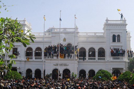 Videos shared by the local media showed protesters waving the Sri Lankan flag as they gathered on the balconies of the building.