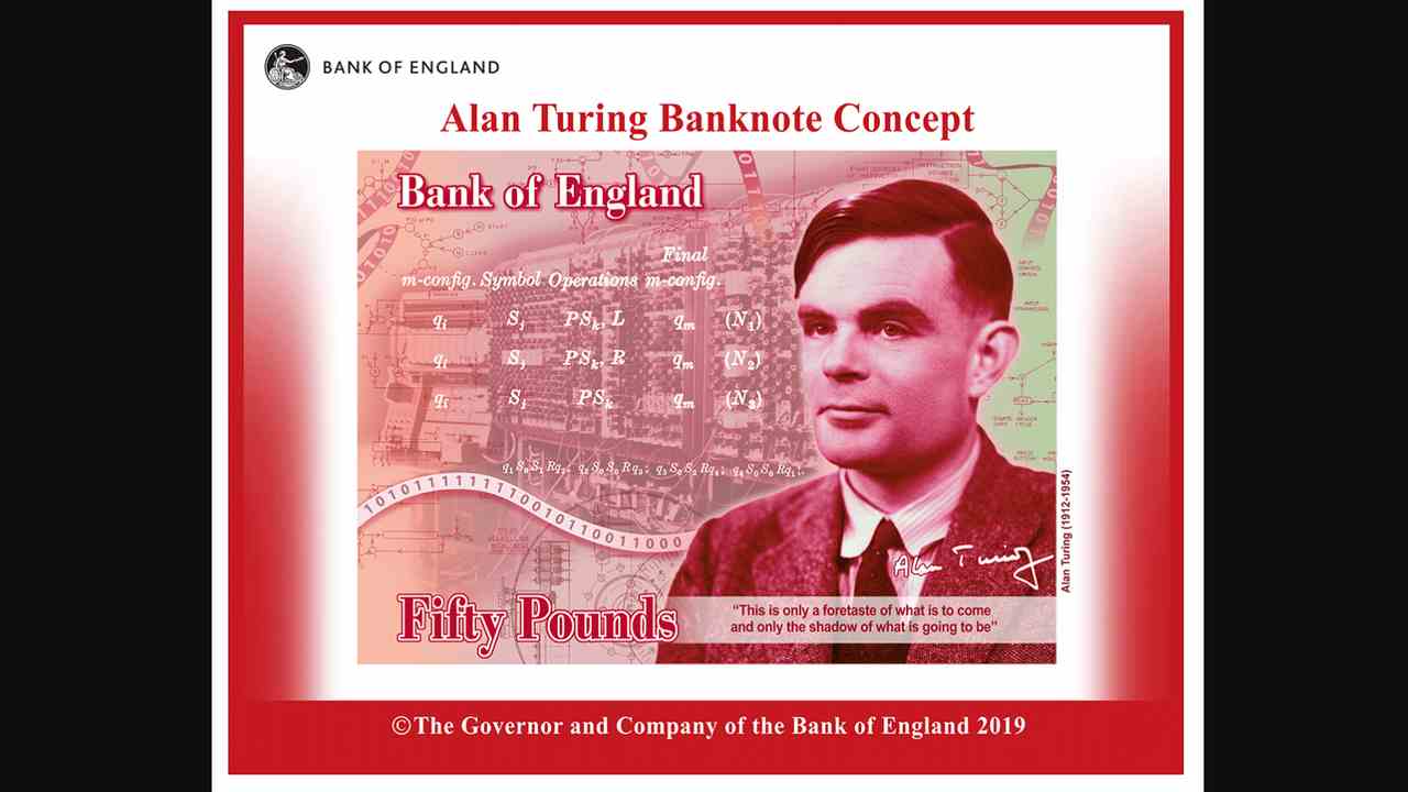 The 50-pound Alan Turing note from the Bank of England. Image credit: Bank of England[/caption] In 2018, the Banknote Character Advisory Committee chose to celebrate the field of science on the 50-pound note and this was followed by a six week public nomination period. The Bank received a total of 227,299 nominations, covering 989 eligible characters, it said. The Committee considered all the nominations before deciding on a shortlist of 12 options, which were put to Governor Carney for him to make the final decision. “Alan Turing was an outstanding mathematician whose work has had an enormous impact on how we live today. As the father of computer science and artificial intelligence, as well as war hero, Alan Turing’s contributions were far-ranging and path-breaking. Turing is a giant on whose shoulders so many now stand,” Carney commented on the 41-year-old computer pioneer who died in 1954. Turing provided the theoretical underpinnings for the modern computer. While best known for his work devising code-breaking machines during World War II, Turing played a pivotal role in the development of early computers first at the National Physical Laboratory and later at the University of Manchester. He set the foundations for work on artificial intelligence by considering the question of whether machines could think. [caption id=“attachment_7000451” align=“alignnone” width=“1280”]