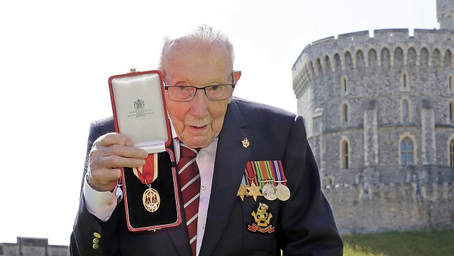 London: Tom Moore, the 100-year-old World War II veteran who captivated the British public in the early days of the coronavirus pandemic with his fundraising efforts, has been hospitalised with COVID-19, his daughter said Sunday. Hannah Ingram-Moore revealed in a statement posted on Twitter that her father, widely known as Captain Tom, has been admitted to Bedford Hospital because he needed “additional help” with his breathing. She said that over the past few weeks her father had been treated for pneumonia and that he had tested positive for the coronavirus last week. She said he is being treated in a ward, not in an intensive care unit. “The medical care he has received in the last few weeks has been remarkable and we know that the wonderful staff at Bedford Hospital will do all they can to make him comfortable and hopefully return home as soon as possible,” she said. Moore became an emblem of hope in the early weeks of the pandemic in April when he walked 100 laps around his garden in England for the National Health Service to coincide with his 100th birthday. Instead of the 1,000 pounds ($1,370) aspiration, he raised around 33 million pounds ($45 million). Moore, who rose to the rank of captain while serving in India and Burma during the war, was knighted by Queen Elizabeth II in July for his fundraising efforts. Best wishes came in from far and wide, including from British Prime Minister Boris Johnson, who said in a tweet that Moore had “inspired the whole nation, and I know we are all wishing you a full recovery.”