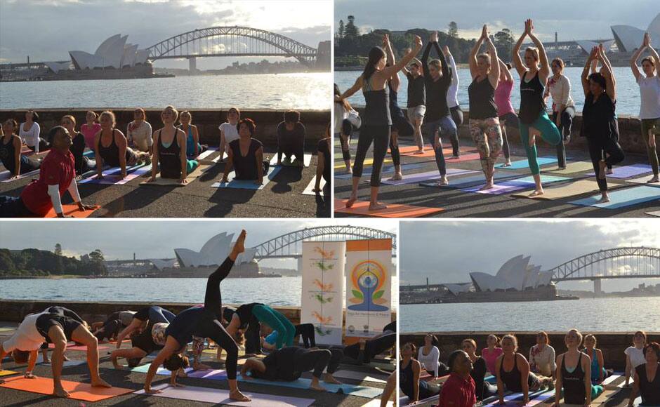 People stretch it out in the backdrop of the Sydney Opera House at Sydney Harbour. twitter.com/MEAIndia[/caption] [caption id=“attachment_2300888” align=“alignleft” width=“940”]